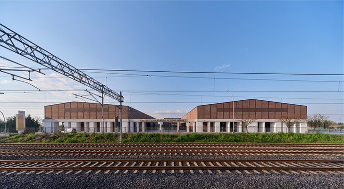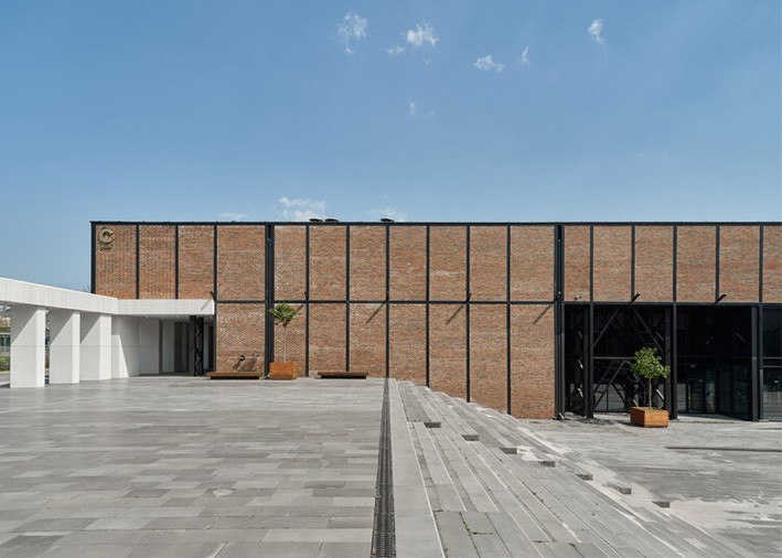 Orijinal fabrikanın tuğla cephesinin görsel karakteri, tek bir cephe karakteri elde etmek için tüm cephelere genişletildi. Ancak mevcut sistem bölümü mevcut şartnamelere göre yeniden yorumlanmış ve tuğla kaplamalar arasına ısı yalıtımı yerleştirmek için yeni bir detay geliştirilmiştir.