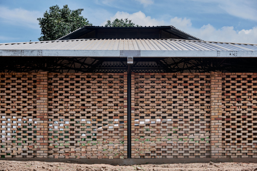 Namabaale Eğitim Merkezi’nin sınıfları, Localworks’ün son on yılda Cotton On Vakfı için tamamladığı bir dizi ilkokul projesinin üçüncü versiyonunu yansıtıyor. Bu süre zarfında tasarım gelişim gösterdi: dayanıklılık, düşük bakım maliyeti ve yerel malzemelerin kullanımı gibi temel ilkeler korunurken, yapıların sağlamlığı giderek artırıldı. Son düzenlemede, Localworks dayanıklı bir çelik-tuğla kompozit duvar sistemi kullandı. Bu sistemde pencere çerçevesi aynı zamanda duvar güçlendiricisi işlevi görüyor ve yarım tuğla duvarda gizleniyor. Bu yapı tek katmanlı, uzun kenar üst üste tipi tuğlalardan oluşuyor. Bu, önemli bir ağırlık azalmasına yol açarak temelin tasarımında daha verimli bir sonuç ortaya çıkarıyor ve tuğla işçiliğinin tamamlanmasından önce çatının inşa edilmesine olanak tanıyor.