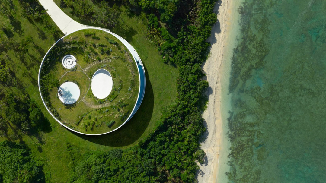 Fujimoto’nun doğayla bütünleşme vizyonunu yansıtan Earth, organik hatlara sahip dairesel formuyla dikkat çekiyor. Beyaz, kıvrımlı bir duvarla çevrili olan bu özel tatil evi, hilal şeklinde tasarlanmış ve üzerindeki bahçe denize doğru eğimlenerek manzara ile yapıyı bütünleştiriyor.