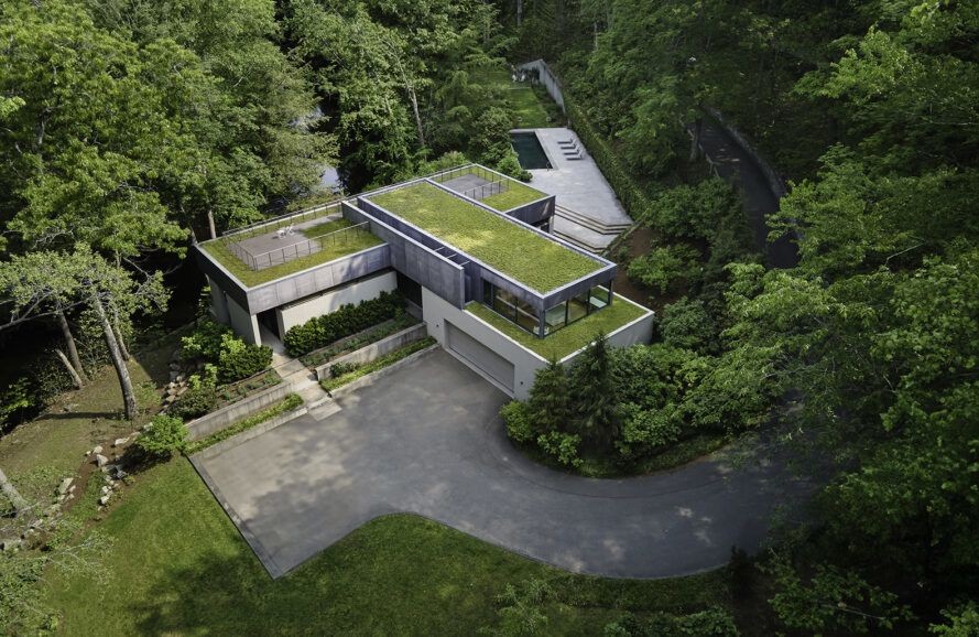 Specht Architects tarafından tasarlanan sürdürülebilir mimari konut, Connecticut'taki Saugatuck Nehri kıyısında yer alan 2.400 fit karelik bir konut. Az yer kaplaması ve konut ile yemyeşil çevre arasındaki sınırları belirsizleştirmesi hedeflenerek inşa edilen Weston Residence'ın ilk izlenimi, ziyaretçilerin çok katmanlı yeşil çatıları ilk kez gördükleri yukarıdaki yoldan aşağı iniş ile başlıyor.