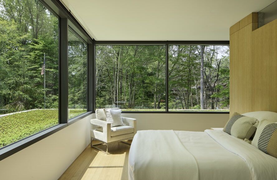 Konuta dahil edilen yeşil mekanlar, konutun çevresindeki 3,5 dönümlük orman ve gelişmiş peyzajla bütünleşmesine yardımcı olurken, bu bütünleşme konutun neredeyse her odasından görülebilir. Dış alanlara tam anlamıyla nüfuz etme amacıyla tasarlanan Weston Residence, engelsiz pencerelerden bol miktarda doğal ışık alıyor.