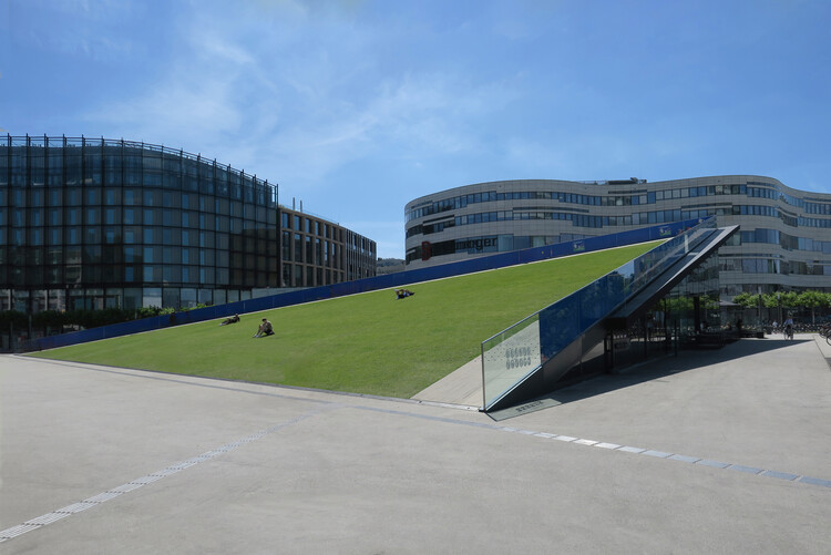 Paul Clemence’e göre Kö-Bogen II, çevresindeki bu ikonik yapılarla hem görsel hem de mekânsal bir bağlantı kuruyor. Eğik yüzeyleri kaplayan yoğun bitki örtüsü sayesinde, devasa kütlesi doğayla bütünleşiyor ve çevresine nazikçe uyum sağlıyor.