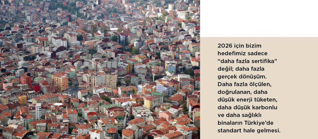 Aynı şekilde karbon gündemi de 2026’da daha merkezde olacak. Sadece operasyonel enerji performansı değil; artık giderek daha fazla yaşam döngüsü, malzeme seçimi, gömülü karbon ve karbon verisi konuşacağız. Bu başlıklar yakın gelecekte “tercih” olmaktan çıkıp “zorunluluk” haline gelecek. ÇEDBİK’in burada rolü; sektörün bu dönüşüme hazırlıklı olmasını sağlayacak şekilde bilgi altyapısını, uygulama kapasitesini ve farkındalığı güçlendirmek.