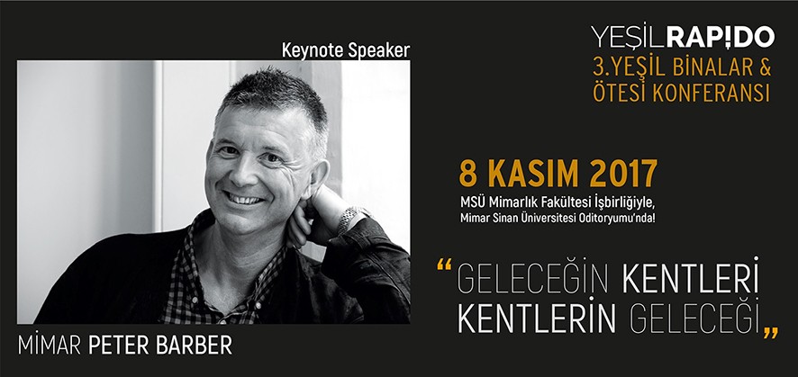 Kültür-mimari ve insan-mekan arasında var olan kırılgan ve karmaşık ilişkinin bir imgesini sunan Peter Barber bir yandan mimarlık faaliyetlerine devam ederken bir yandan da akademik çalışmalarını sürdürmekte. Peter Barber’in yanı sıra ülkemizin değerli mimarları ve akademisyenleri, yapı sektörünün profesyonelleri, karar verici merci olan kamu kurumlarının yetkilileri, geleceğin şehirlerini konuşmak üzere bir araya gelecekler. Sonuç odaklı bir yaklaşım ile önerilerin paylaşılacağı Yeşil Rapido Konferansı 3. kez gerçekleşecek