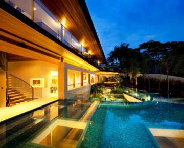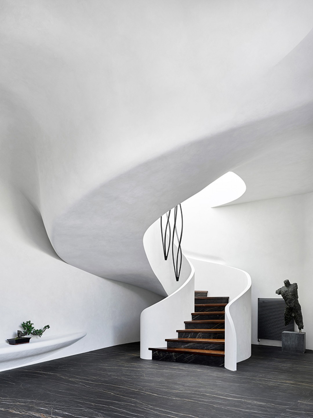 Evin kuzey cephesi camlı duvarlarla kaplı ve göle bakan avluya açılıyor. Yeşil manzara ile kontrast oluşturan duvarlar beyaz boyayla kaplanmış. Evin her iki tarafındaki yollar tepelere doğru ilerliyor. Evin U biçimindeki planı güneşin gün içerisindeki döngüsüne göre ayarlanmış.