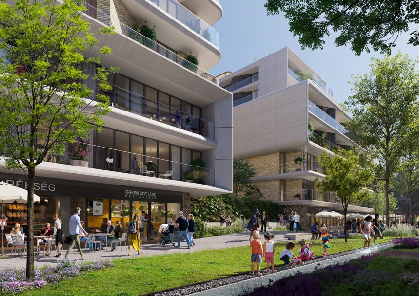Budapeşte'nin 14. bölgesinde yer alan karma kullanımlı Zuglo şehir merkezi, Boşnak Meydanı ve Rakos nehri arasında yaklaşık 7 hektarlık bir alanda, doğayla çevrili yeni kamusal alanları daireler, mağazalar ve ofislerle bütünleştiriyor. Macar Bayer Construct Group tarafından aşamalı olarak geliştirilen projenin önümüzdeki yılın başlarında inşaatına başlaması ve 2029'da tamamlanması bekleniyor.