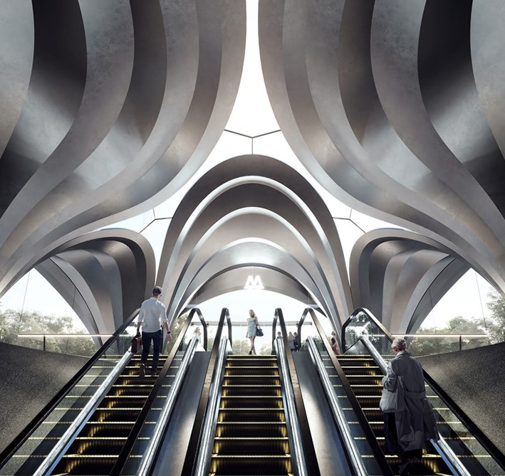 Zaha Hadid Architects, Çelik Pavilyonuyla Dikkat Çeken Bir Metro İstasyonu Tasarladı