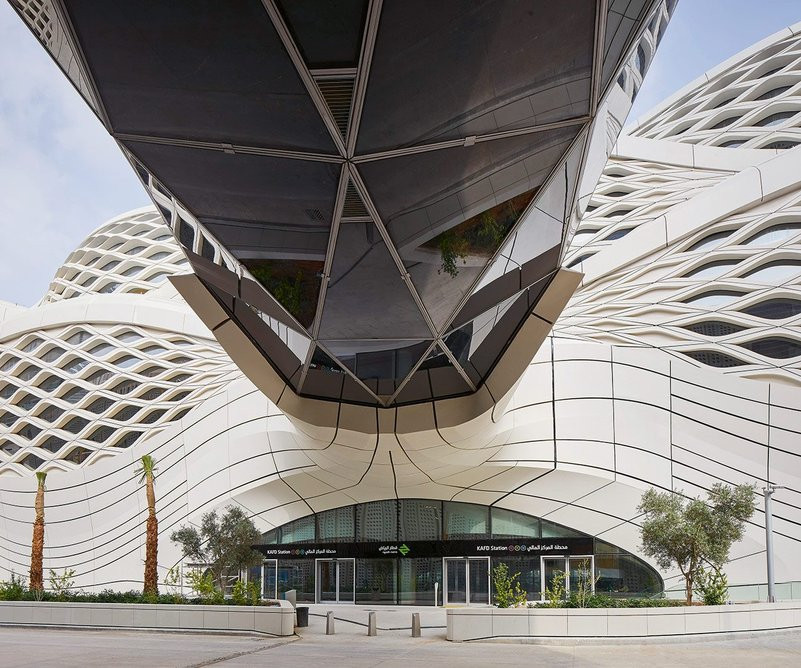 Snøhetta, Gerber Architekten ve Omrania gibi dünya çapında ünlü mimarlık ofislerinin tasarladığı istasyonlarla birlikte Zaha Hadid Architects’in King Abdullah Finans Merkezi (KAFD) İstasyonu, metro sisteminin sembol yapılarından biri olarak öne çıkıyor. Sınırlı bir alana inşa edilen bu istasyon, hem Hat 6 ve havaalanına uzanan Hat 4’ün terminali hem de Hat 1’e aktarma noktası olarak hizmet veriyor.