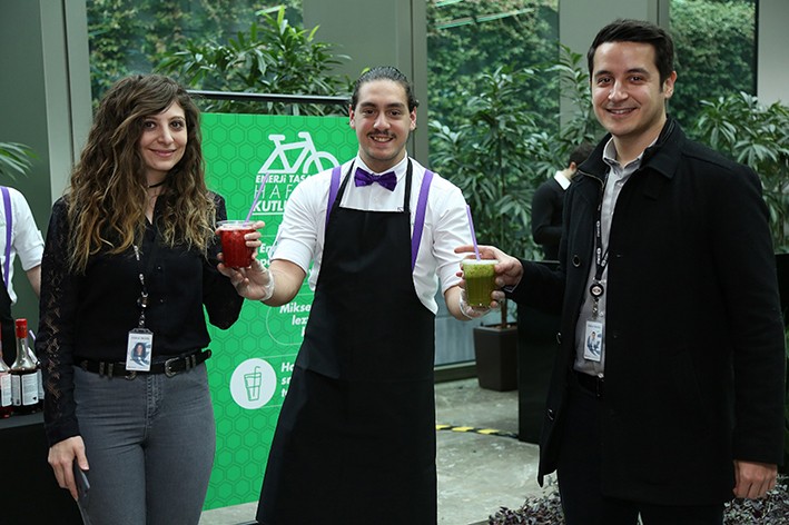 Enerji Verimliliği Haftası kapsamında iki gün boyunca Zorlu Holding’de Kurulu olan pedal aktivitesi alanında enerji tasarrufuna yönelik ilginç bir deneyimin parçası olan 252 çalışan, hızla tükenen kaynakların verimli kullanılmasının sağlanması amacıyla farkındalık kazandı. Her gün tüketilen içeceklerin elde edilmesi için 2 gün boyunca kurulu olan alanda pedal çeviren çalışanlar, sıfır karbon salımı ile insan enerjisinden sağlanan dinamizm sayesinde kendi meyve sularını üretti. “Kendi Enerjini Kendin Üret“ temalı bisiklet aktivitesinde 25 kalori harcayarak 40 watt enerji üreten çalışanlar, böylece enerji üretiminin çevreye etkisini deneyimledi.